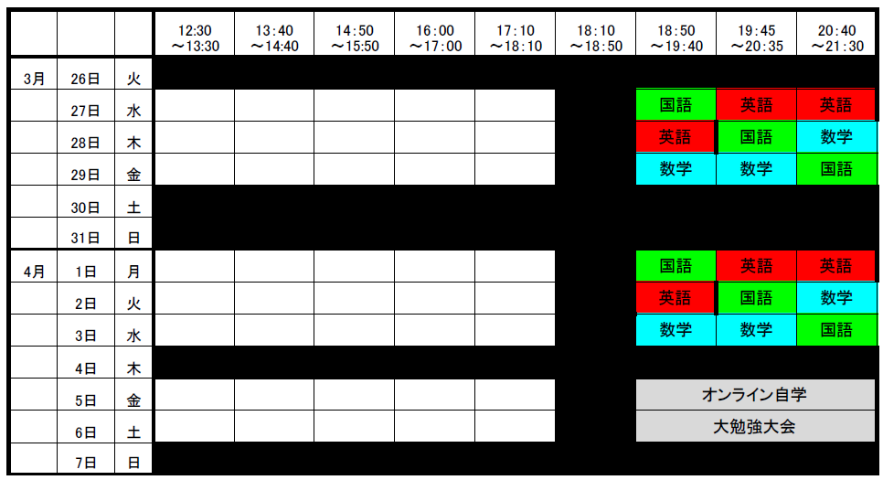 【春期講習の時間割】