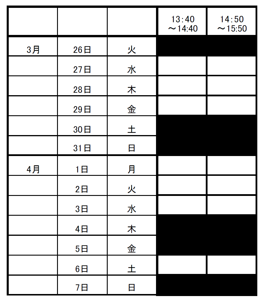 ※時間と日程のお間違いにお気を付けください🙇