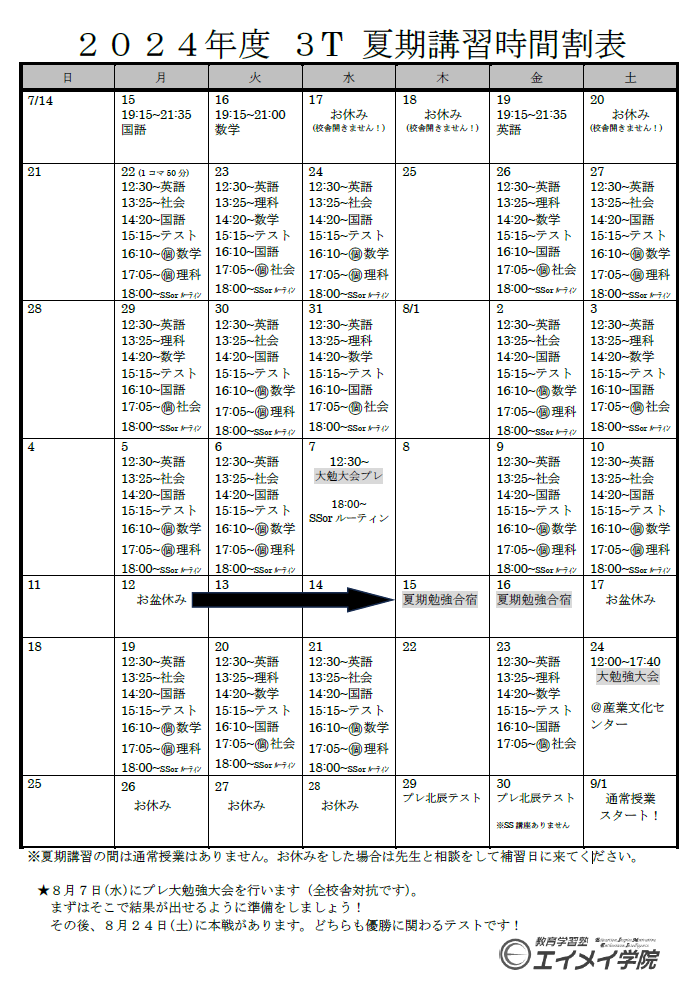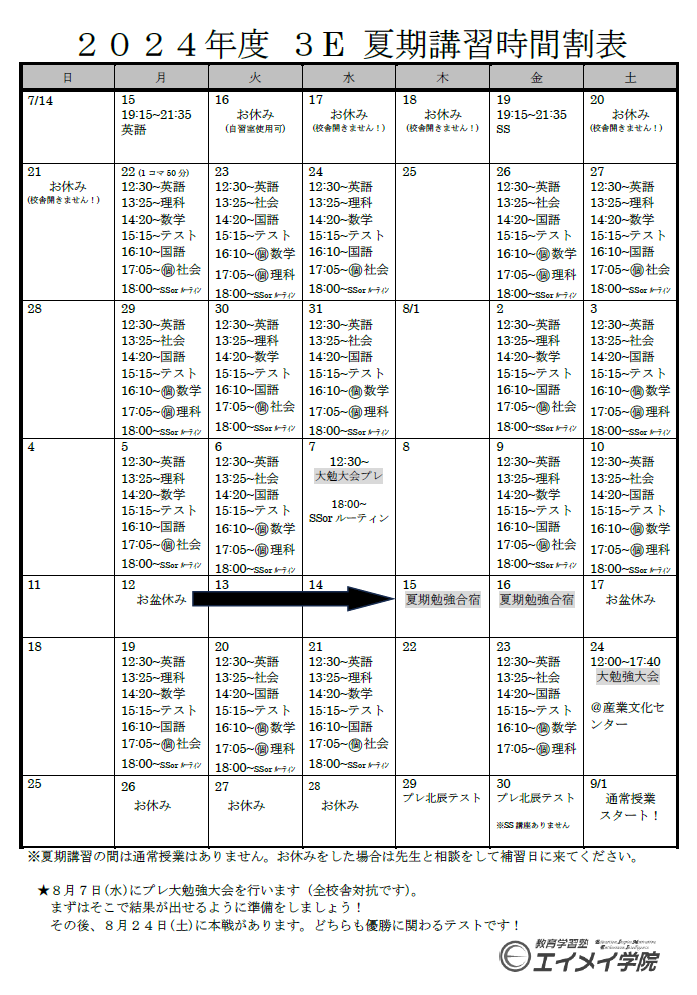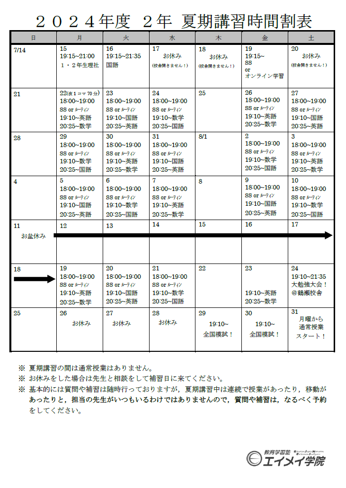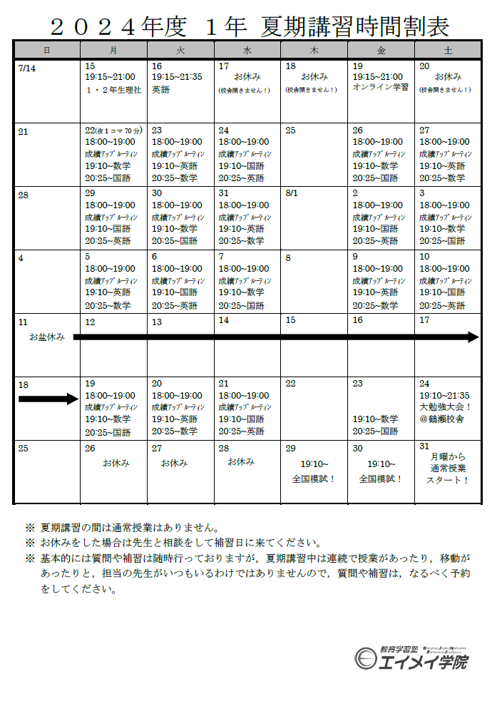 中学生は夏期講習がございます。